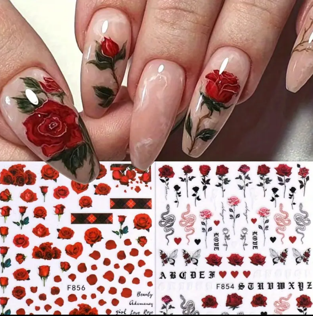 Nail Stickers Self-Adhesive Nail Art Designs Butterflies Flowers and Roses Pattern Decorations for Nail Art Supplies