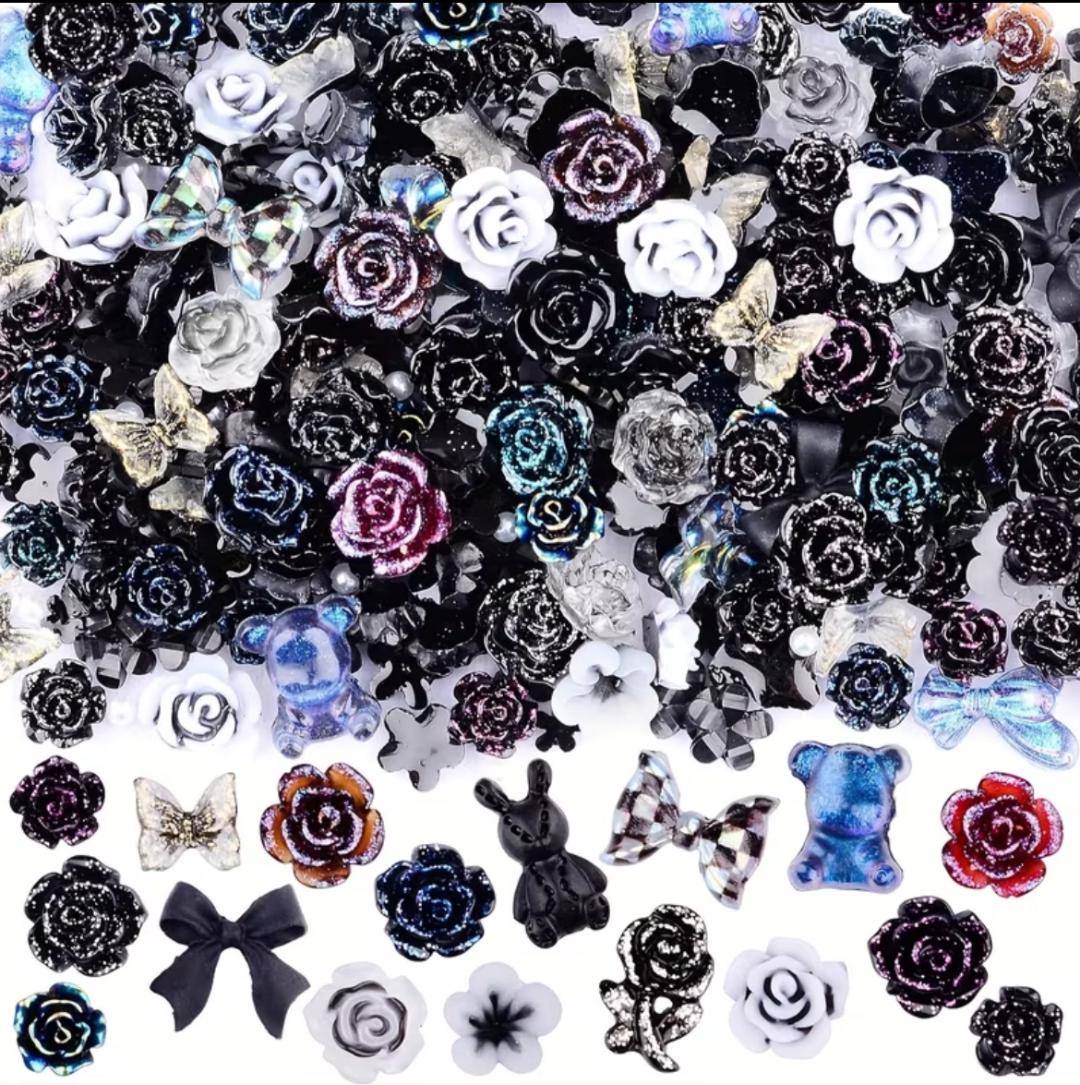200pcs 3D Resin Nail Art Charms Set, Butterfly Bear Rabbit Rose Crown Snake Animal Shapes, Nail Rhinestones for DIY Manicure Accessories, Phone Case Decoration, Unscented. #112